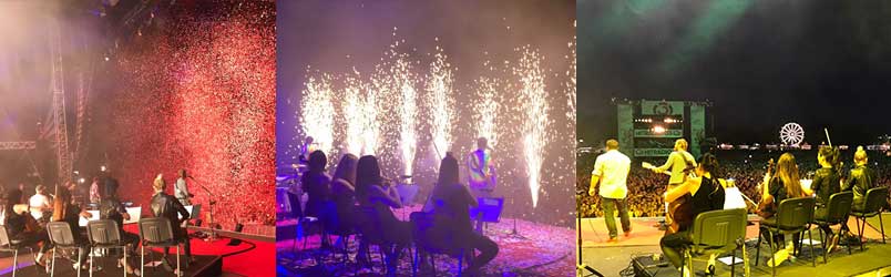 Geigerinnen und Cellistin con Munich Strings spielen mit Michael Buble (Konzert in München)